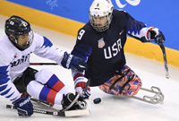 Marine veteran Travis Dodson attends veterans winter sports clinic after winning sled-hockey gold in PyeongChang